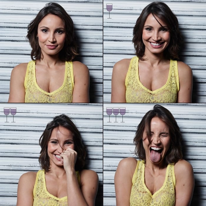 ✍️ Aunque fue un proyecto de 2016, lo he descubierto ahora. Nuestra evolución emocional fotografiada a medida que tomamos vino. Con cero copas, con 1, con 2 y después de 3. Su autor, Marcos Alberti.