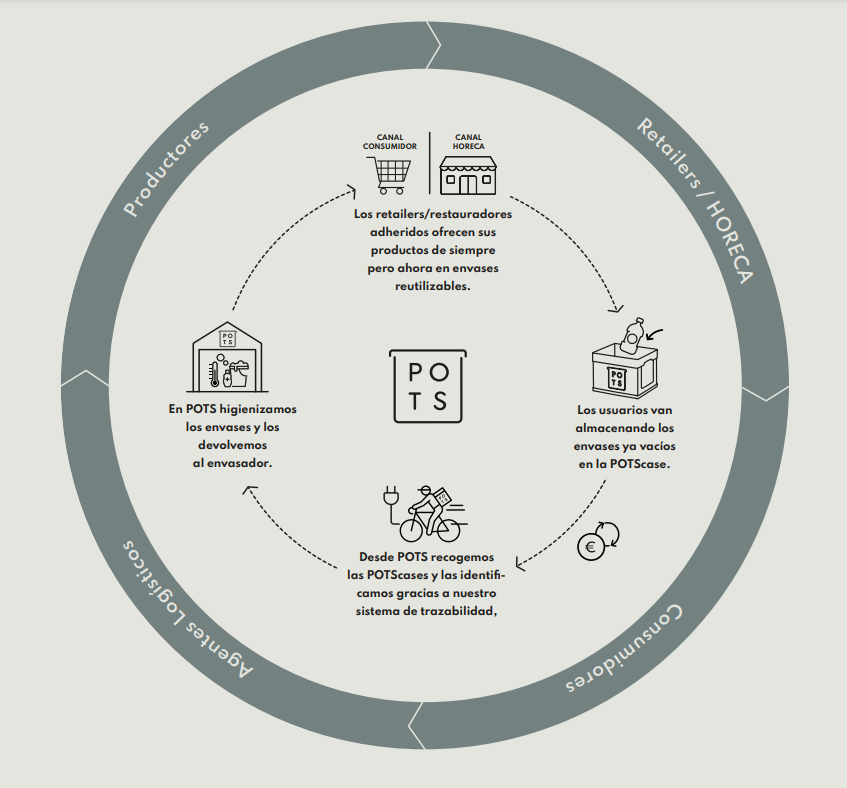 Propósito de POTS: Impulsar la reutilización de envases como modelo de consumo sostenible y convertirse en la plataforma de reutilización de envases de referencia.