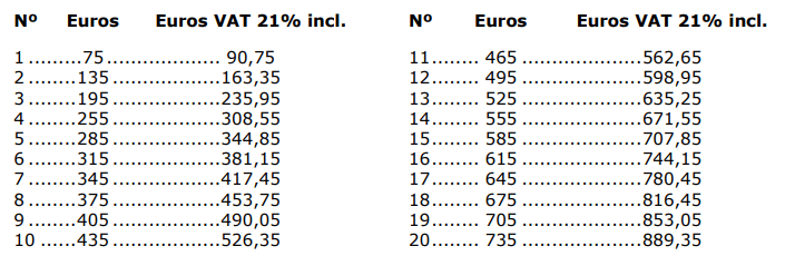 El coste de las medallas varía en función del número deseado, desde 9€ a 38€ por millar.